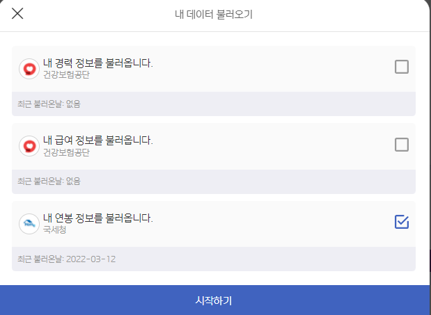 5. 내 연봉 정보를 불러옵니다 체크하고 시작하기