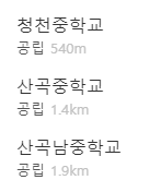인근 청천중학교도 그리 멀지 않은 거리입니다.